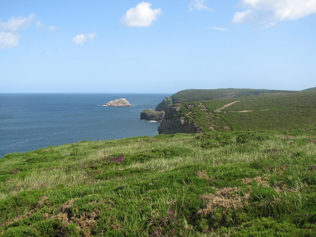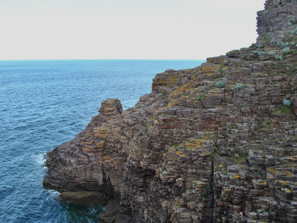 Dès le départ, nous étions noyées dans une immensité de lande multicolore, et très rapidement, nous avons découvert les spectaculaires falaises teintées de rouge du Cap Fréhel. Un drôle de langage s'est alors instauré, fait de « hoo, ouah, youhou », et les clics des appareils photo se sont fait entendre. Arrivés sur le cap, on s'est séparé provisoirement, Bernard (non voyant), guidé par J-C et Dominique la femme d'Hervé, qui a le vertige, ont shunter la partie difficile pour aller prendre un véritable bain de soleil en bord de falaise, face à l'immensité bleue, et au rocher aux oiseau, où plus d'un millier de mouettes et goéland séjournent à l'année, et nichent en ce moment : spectacle magique que de les voir se battre pour un petit bout de paille.