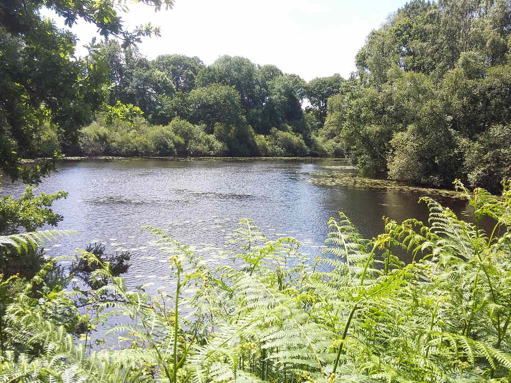 Dans la matinée, nous traversons des bois et longeons quelques étangs. Peu de temps avant le repas du midi, nous avons pu faire une petite mise en bouche avec de délicieuses cerises cueillies d’un merisier.