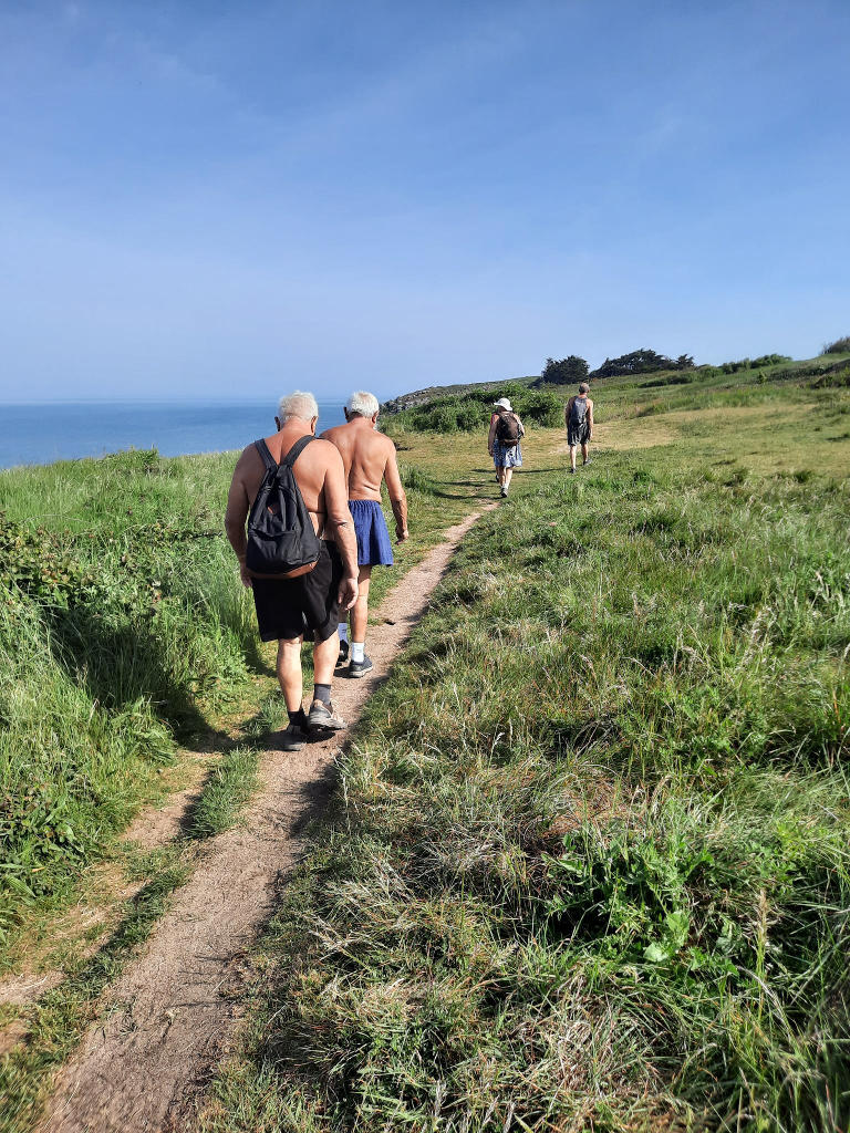 Tout d'abord covoiturage au rdv 1 puis arrivée au départ de la randonu où nous sommes restés tous les 3 de 10h30à 14h ce qui nous a permis un premier contact avec la mer et un pique-nique sur la plage puis nous nous sommes rendus sur la plage du Verger et les randonneurs nous ont rejoint puis bronzette et bain de mer comme dit par Laurent.