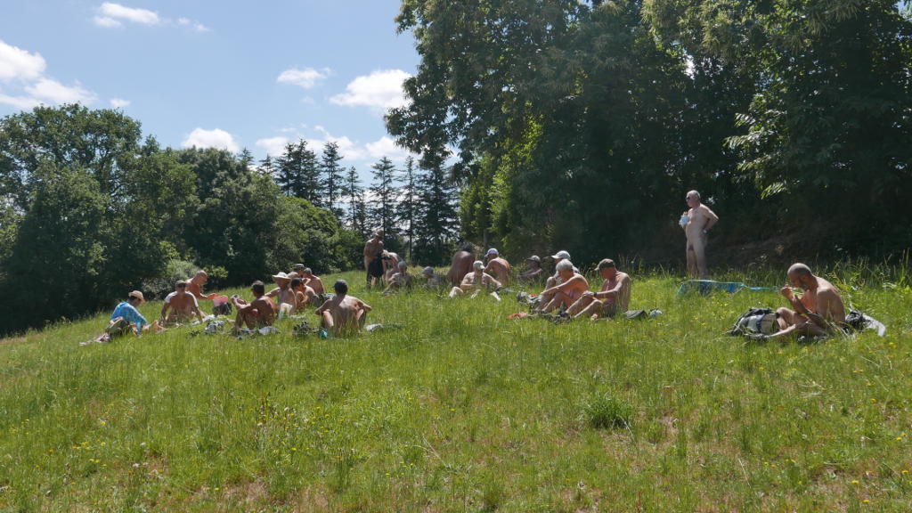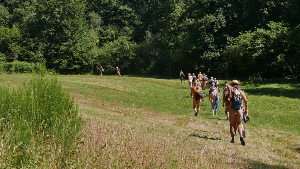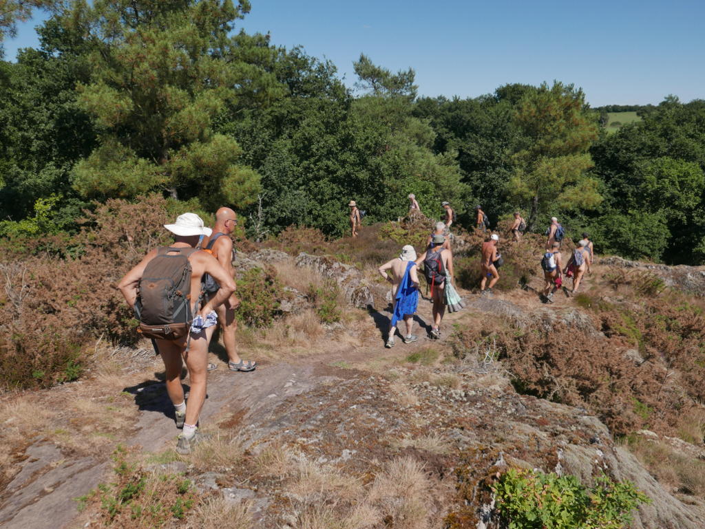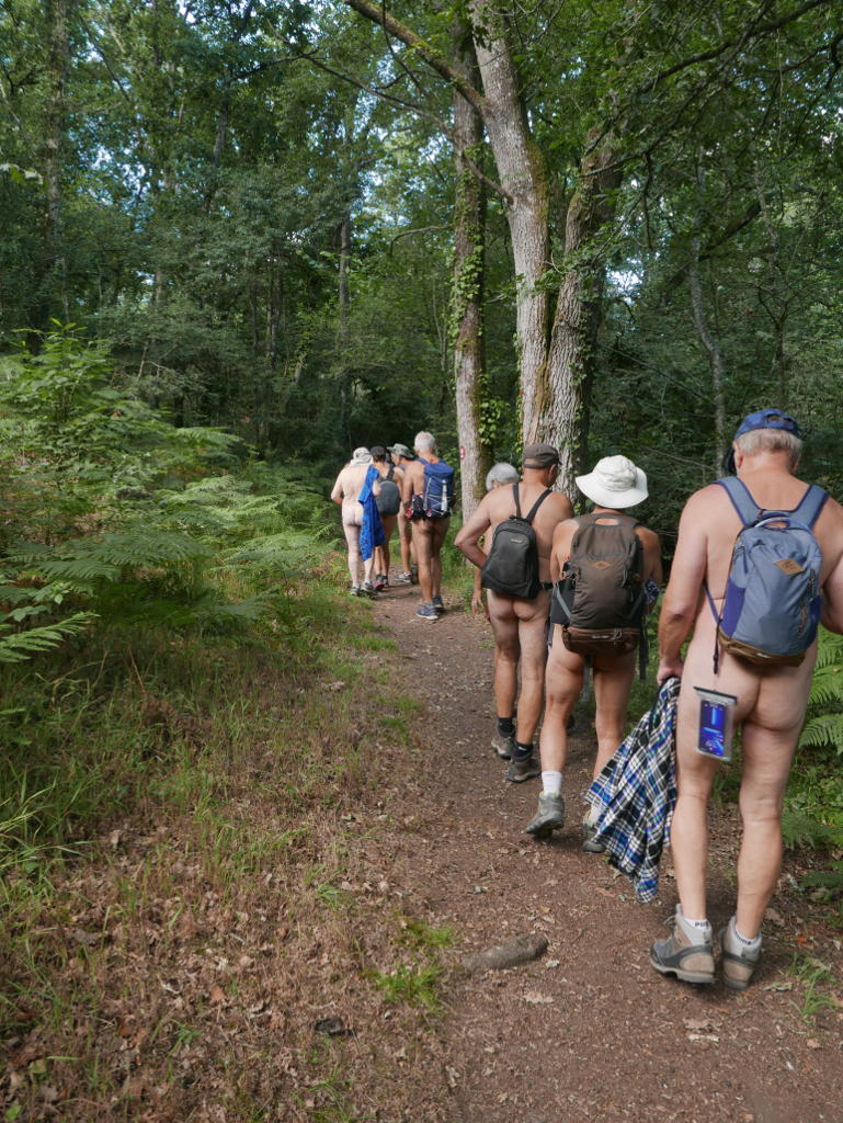 Les conversations s'animent, beaucoup se connaissent (plusieurs adhérents de l’ARNB bien sûr mais aussi d'aboldrnat, de l'apnel et du mouvement naturiste) et les autres se découvrent; l' ambiance est très sympathique, l'allure modérée, Philippe ferme la marche et s’assure que tout le monde est encore là (pour info, 10 % de perte ne sont pas autorisés qu'on se le dise!).