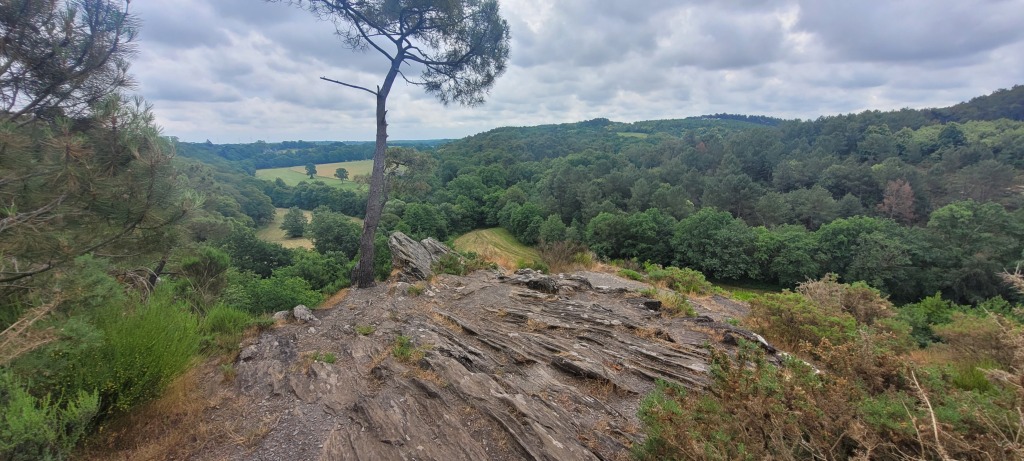 Une première pause avant d'entamer "l'ascension" vers le Rocher des Amoureux pour les plus sportifs. Quelques marcheurs décident de rester pour garder nos sacs au pied d'un petit sanctuaire où la Vierge veille également sur nos affaires. Le sentiment de liberté est totale sans nos sac et dans le plus simple appareil pour gravir cette petite colline et découvrir un magnifique panorama sur la vallée du Don et le château de Juzet. Quelques photos pour immortaliser l'instant et redescendre pour retrouver le reste du groupe et continuer en direction de Guémené Penfao.