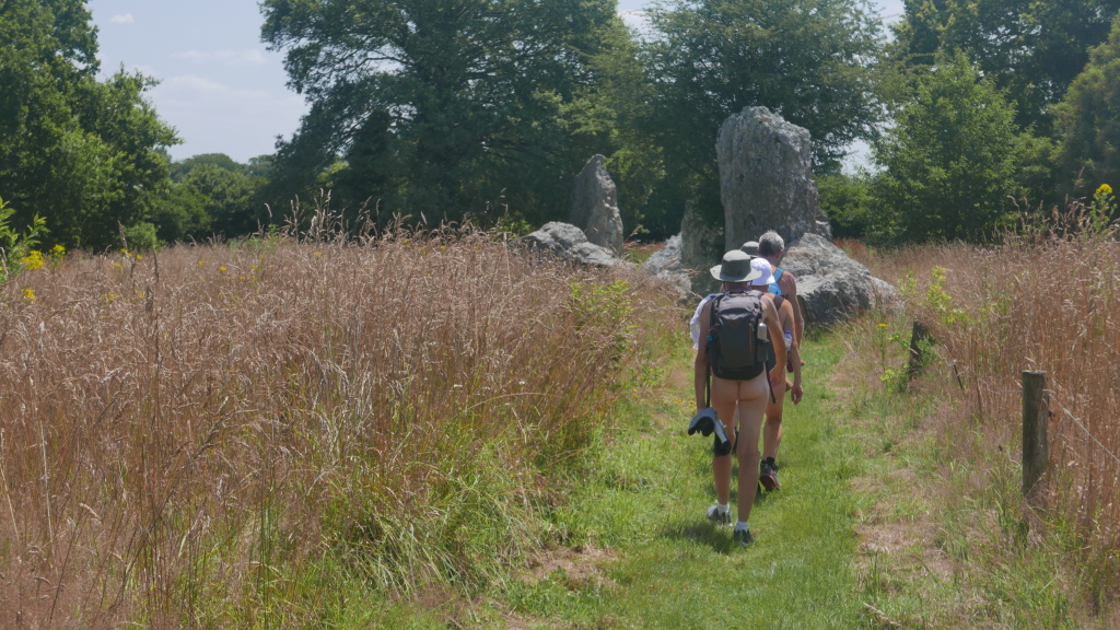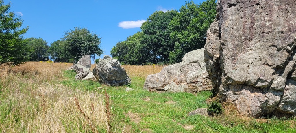Pour le reste du déroulé, c’était une splendide balade très bucolique à travers la Bretagne des bosquets, des bocages, des étangs. Ombragée une bonne partie du temps ce qui était très appréciable en ce jour de forte chaleur. Georges et Olivier ont pris un raccourci avec Bernard pour lui faciliter un peu le trajet et le reste du groupe a poursuivi le chemin. Pause repas installés sur les impressionnants blocs du site mégalithique de Lampouy.