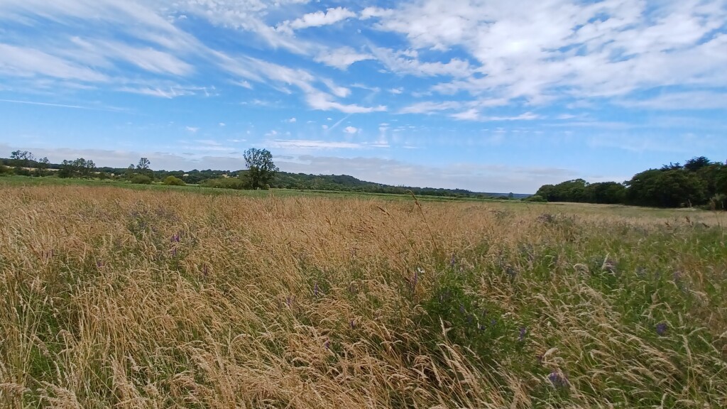 On a commencé par traverser la prairie où on avait mangé pour arriver à un petit pont en bois qui remplaçait le pont suspendu qu'on utilsait avant. A peine avait-on rejoint le chemin de randonnée qu'on tombait sur un couple avec des appareils photo et gros télé-objectif, ostensiblement pour observer les oiseaux. On craignait de voir beaucoup de monde sur ce circuit, mais finalement c'était eux les seuls qu'on a croisés (une deuxième fois à l'opposé du marais).