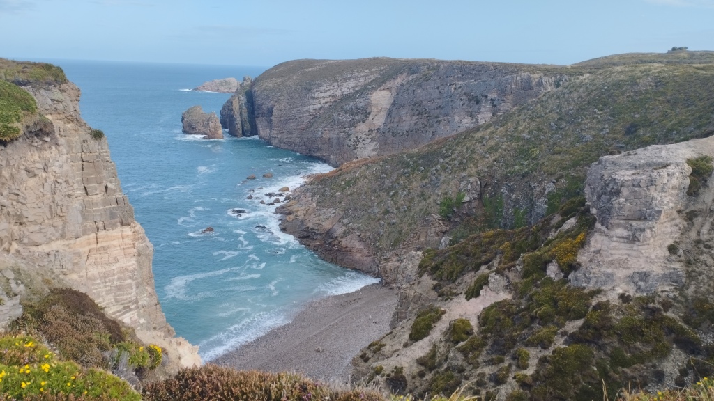 Au phare j'ai retrouvé Jean-Yves et on a fait un tour le long des falaises, vers l'ancienne tour et la nouvelle plateforme d'observation. Tout au long on a gardé un oeil ouvert pour trouver par où, lors de précédentes éditions de cette rando, les gens descendaient pour arriver au niveau des oiseaux, mais on n'a rien trouvé. Peut-être que c'est vraiment casse-cou, peut-être que la situation a beaucoup évolué depuis la dernière fois, qui remonte à 2017. Avec le tourisme de masse, beaucoup d'aménagements ont été faits sur le site et sur la route d'accès.