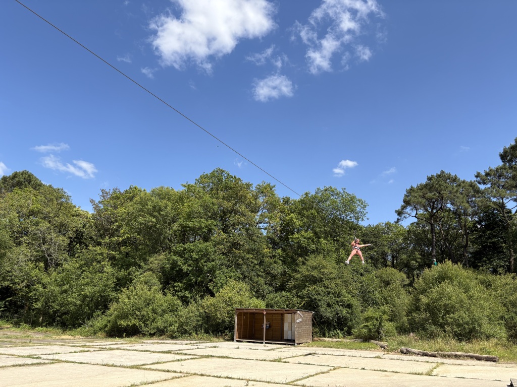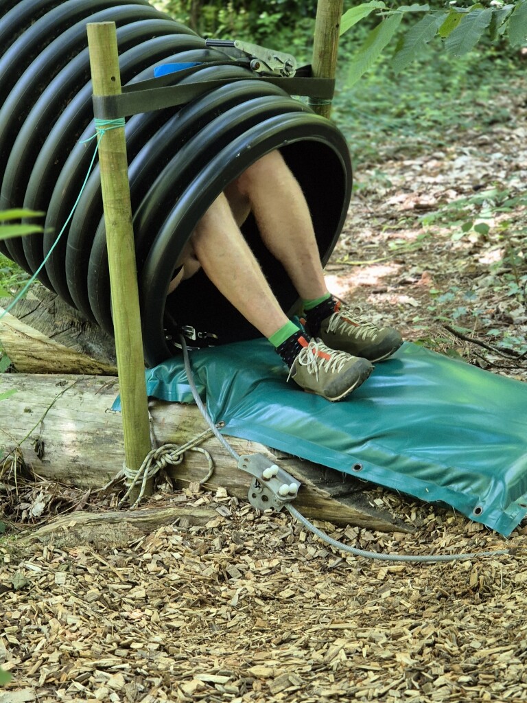 Un petit briefing et un mini-parcours de test et on est prêt à l'attaque. Tout de suite on prend possession de tout le parc. Il y en a qui vont directement du côté des parcours sportifs, moi-même et quelques autres restent du côté "simple", qui me suffit largement. J'en fait trois des six, bien lentement, mais je suis le dernier, personne n'attend derrière moi, c'est super agréable (et personne ne me voit souffrir).