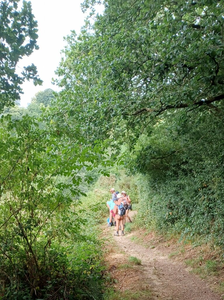 Nous voilà prêts pour une randonnée de 16km sur le circuit du barrage du Bois Joli ; circuit qui suit le Frémur, petit fleuve qui délimite deux départements l'Ille-et-Vilaine et les Cotes d'Armor. Une fois sortis du bourg après plusieurs hésitations sur la direction à prendre nous marchons sur un chemin : déjà les personnes habituées se retrouvent dans leur tenue préférée, moi j’attends un peu et puis me voilà comme tout le monde au bout de 500m en tenue d'Adam.