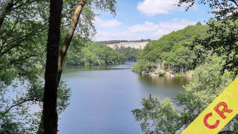 Petite mise en place logistique des voitures comme cette rando n'était pas en boucle; départ St Aignan arrosé par les eaux de sortie du barrage, arrivée à Trégnanton sur l'autre rive du Lac.