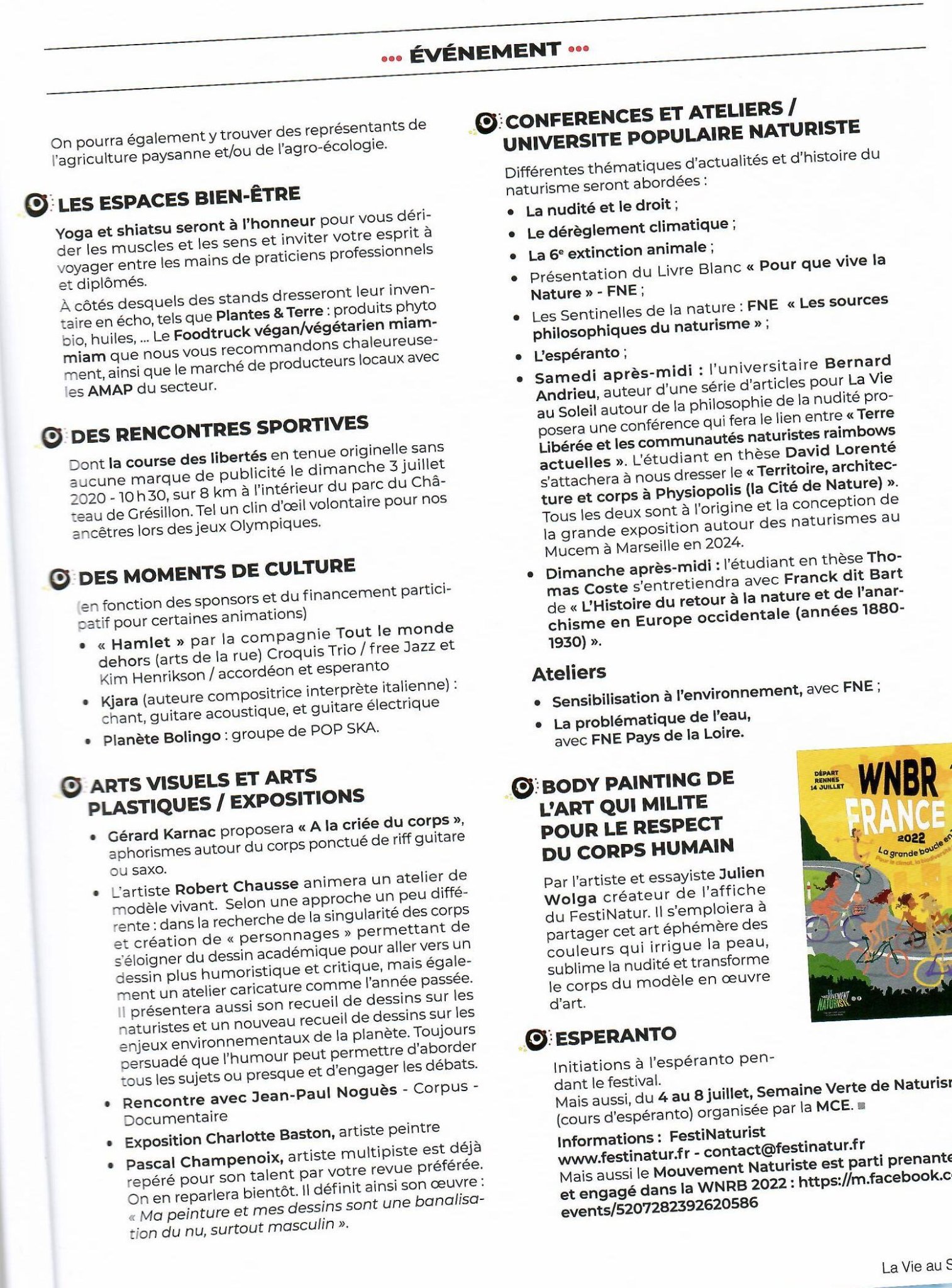 Dans le 𝐍°𝟒𝟒 de La Vie au Soleil, un article de Franck Dit Bart sur la 2ème édition du Festival Natur'IST por Nova Mondo les 2 et 3 juillet prochains au château de Grésillon près d'Angers.